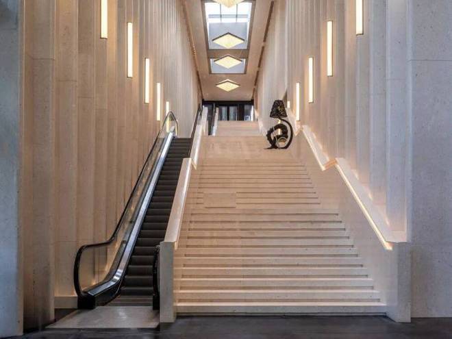 万科中興傲舍以 美术馆标准锻造艺术会所 ,在中兴路一号基础上实现迭代升级。 空间内融入上海首座度假风植物园泳池、沉浸式艺术光影长廊、女性友好型健身房,以及标志性的三层挑空艺术阶梯 ——此阶梯原为两层设计,团队为追求卓越体验不惜推翻重来,最终以恢弘尺度营造拾级而上的“艺术殿堂”仪式感,阶间点缀国内外大师艺术品,让归家步履浸染美学氛围。