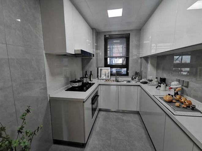 U型厨房,操作台与厨房动线符合人体工学设计,转身之间,洗、切、烹、炒流畅便捷,与餐客厅形成一条笔直的居家生活动线;三间卧室全附带飘窗,拓宽了景观视野的同时,增加了实际空间使用率;南向主卧做了带独立卫生间的套房设计,仪式感和私密性更强。