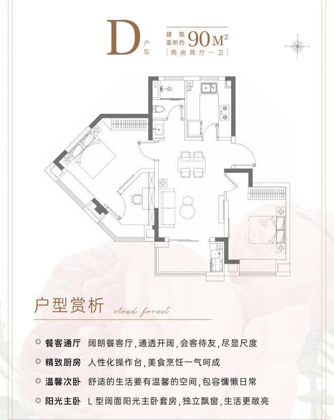 这样一个2房户型,既保证了舒适度,总价还控制在千万以内,给“预算刚需”的购房者一个很好的上车机会。