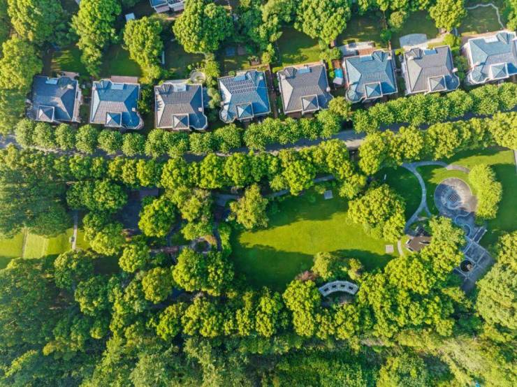 宽绰道路两旁的绿树成荫、配上别墅区干净低伏的天际线,漫步在这里有一种世外桃源的既视感.