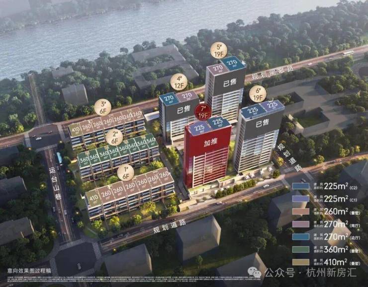 央企华润置地,上城区安琪儿板块,占地面积约2.2万方,建筑面积约7.8万方,容积率2.3,项目规划4幢12-19F高层+3幢6F叠墅(含两叠和三叠),总户数186户(高层130户+叠墅56户)。目前加推在售7号楼为高层面积段约225-227㎡,备案价最低约1390万起。少量270㎡一方一价。