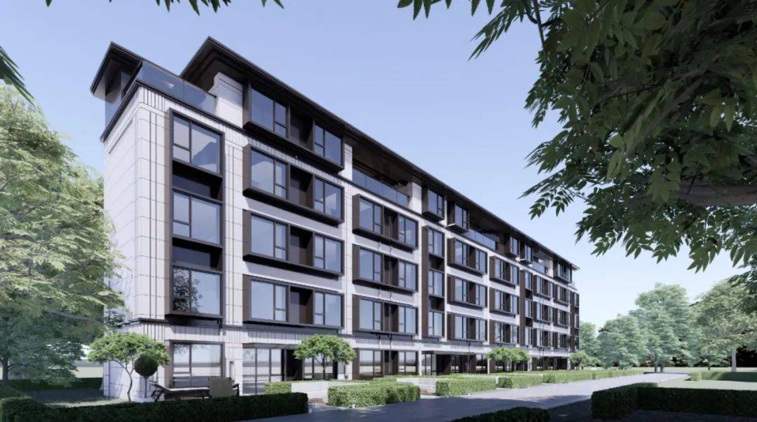 项目整体为现代中式风格,建筑水平一字排开,融合新中式与现代居住理念,搭配咖色涂料,大面积Low-E玻璃窗,重序东方屋檐下的精神天地。