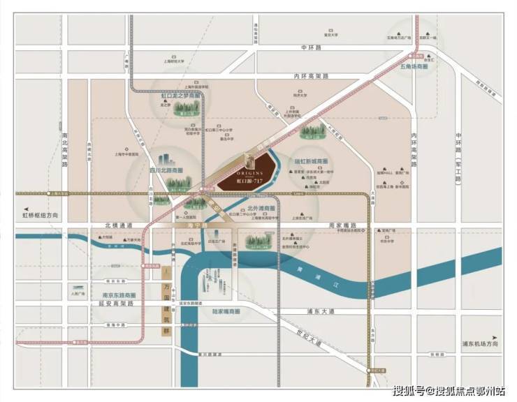 项目择址上海虹口内环内,周边醇熟资源环伺,揽高端商业、健康医疗、文化地标、星级酒店等丰盛配套,于城央之上掌驭繁华,醇熟生活便利尽得。