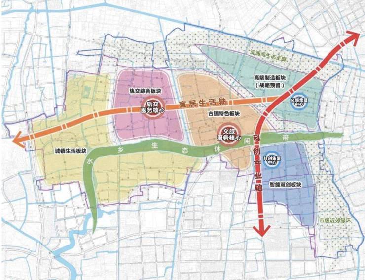 作为长三角G60科创走廊“一廊九区”的重要承载区,泗泾将承载“人工智能产业基地”功能。2035期间,将着力建设智能双创、高端制造2大产业板块。以泗泾为中心,沿着泗陈公路,一条集高端智能制造+泗泾古镇+轨交高端综合服务核心的“G60科创走廊城市会客厅”正在重塑焕新。