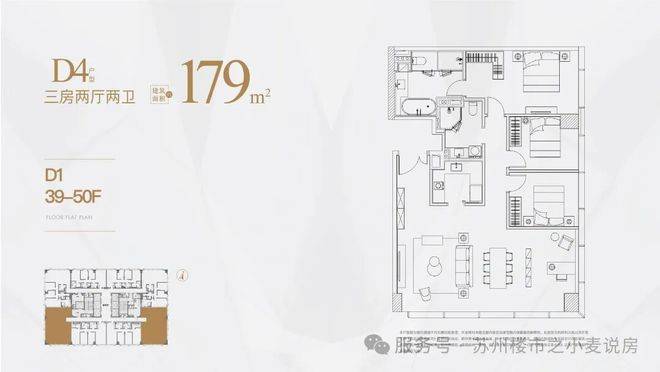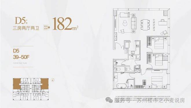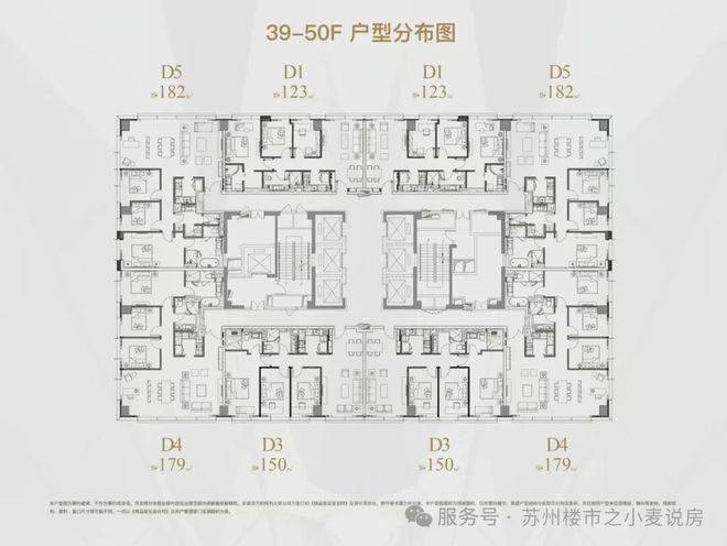 高区为39-50层,户型分别是125㎡,150㎡,180㎡。