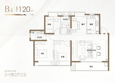 『映悦』约120㎡3+1房2厅2卫:「四面宽朝南+IMAX巨幕阳台」把四季风光框成生活背景,横厅联动开放式书房,办公、社交、亲子时光自由切换;3+1灵动空间随家庭成长变形,二孩时代或三代同堂都能从容适配。