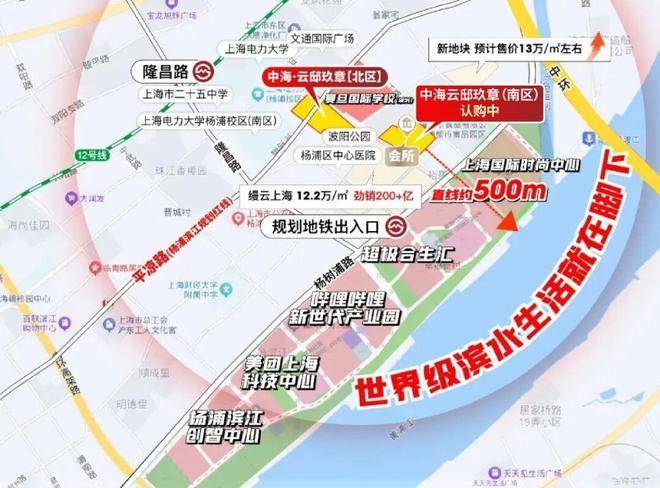 12号线隆昌路站:直线距离约500m,4站北外滩,7站陆家嘴,8站人广。