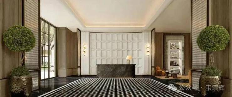 社区主入口更是兼具豪华酒店与海派元素设计风格,挑高约6米的入户大堂、水系景观与艺术家共创作品交相辉映,奢华感和高级感拉满!
