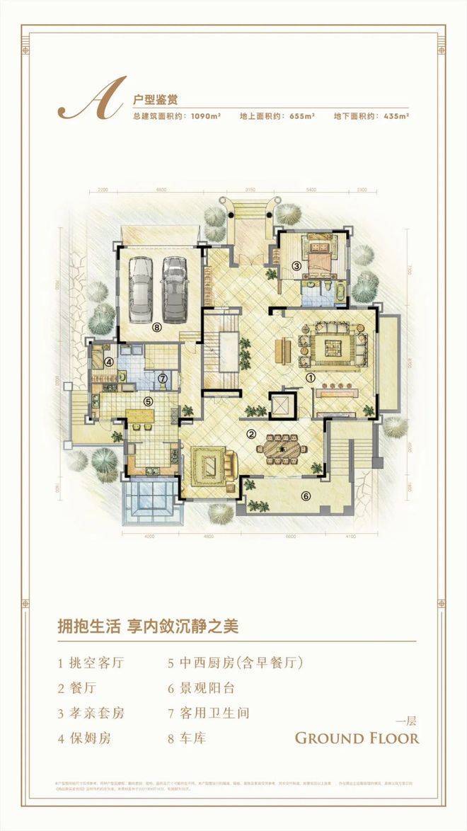 DOUBLE LIVING ROOMS 奢阔双客厅:双首层设计,双入户模式,双客厅配置:D户型,逾18米南向面宽,一楼约10米挑高大堂,款待宾客,尽享尊崇;阳光庭院层,花园入户,友人相聚,畅享午后慵懒阳光。