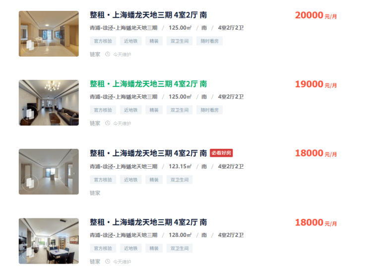 产业与配套的大爆发,首先冲击的肯定是响应时间较短的租房市场,据链家网显示,目前徐泾125㎡户型的租金能达到2万/月,1年的租金就逼近24万!