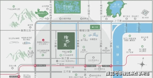1-3公里范围内,省立同德医院之江院区、 浙一医院之江院区,能够满足业主健康医疗需求;西面约1.5公里,有金街美地商业综合体,东面1公里多, 有之江银泰百货,以及南面约2公里还有在建的超大体量银泰城。