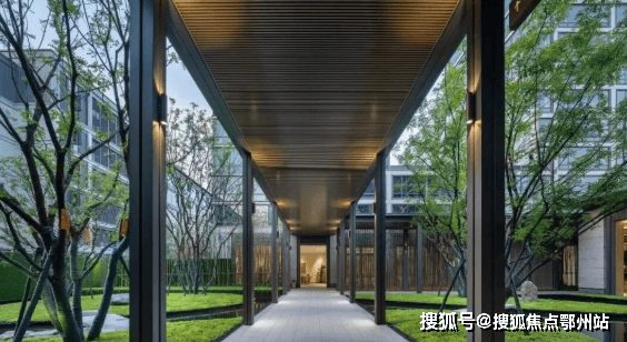 项目景观以交互式双轴为骨架,其中 纵轴为礼序之轴,结合业主的归家动线,通过园区大堂、入口景观庭院和中心花园等礼序空间,尽显对业主的尊重和礼遇。