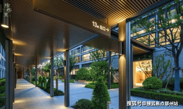 穿过内横轴,进入颐乐公寓区,以景观软性隔断和道闸为内外区隔,兼顾了私密性和景观的连贯性,也避免了实体围墙、铁门等硬隔断带来的冰冷与粗暴。