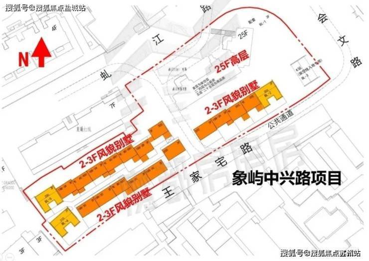 项目规划建造高层公寓+风貌合院别墅产品.高层为一栋25层高建筑,5-25层为商品房,一层6户,共126套,均为建面约99㎡小三房.