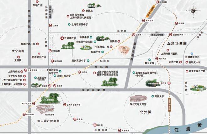 根据虹口2035规划,将构筑“一核三片两轴一环”发展格局,提升城区能级和核心竞争力,实现“人文虹口,魅力之城”的总目标。(信息来源:虹口区规划和自然资源局)本案距中环直线距离仅约600米,优享区域发展优势与内中环利好辐射,以高品质住区匹配城市发展潮向。