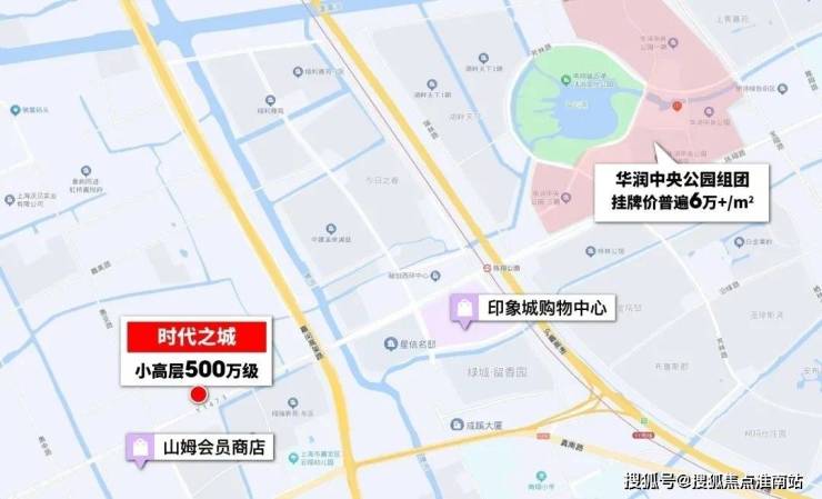 另作为毗邻板块,时代之城小高层足足比普陀桃浦新房(约8.5万/㎡)便宜近3万/㎡,性价比突出。