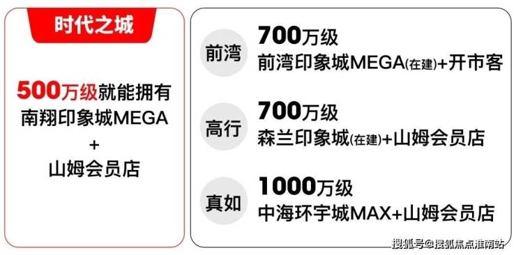 毋庸置疑,南翔就是外环外商业及居住环境的领军板块,500万级就能享700万、1000万级才有的配套,且时代之城对面就是山姆会员店,到印象城MEGA也在步行范围内,是项目步行配套。