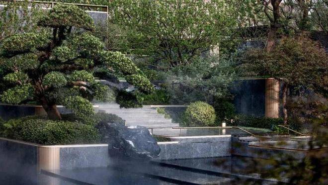 图:中天·樾青岚中央水景庭院实景图