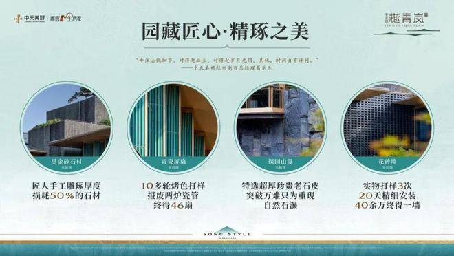 樾青岚深植宋代匠造基因,将安全耐久奉为营建圭臬:其钢结构坡顶体系强韧可靠,无惧极端气候挑战;青釉陶瓷幕墙经严苛锻造,历久弥新,温润如玉;仿木纹饰面运用先进自洁涂层,智慧抵御岁月侵蚀;精挑细选的老石皮与多重淬炼的瓷釉,更赋予建筑独特的文化底蕴与历久弥坚的质感。每一环节皆恪守严苛选材与工艺标准,以现代匠心兑现可传承的当代院居典范。