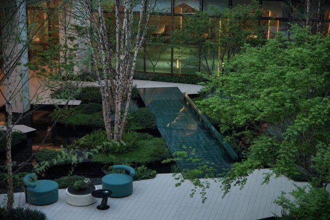 东方礼序归家体验:归家动线以前场酒店式落客的礼院门堂开启,结合地下会所打造的下沉浮岛森林,逐渐蔓延到地面层的中心景观花园,最后曲径通向各院的宅间花园。层层递进,又一以贯通。融合传统东方礼序与现代审美,每一进都有独特景观体验。