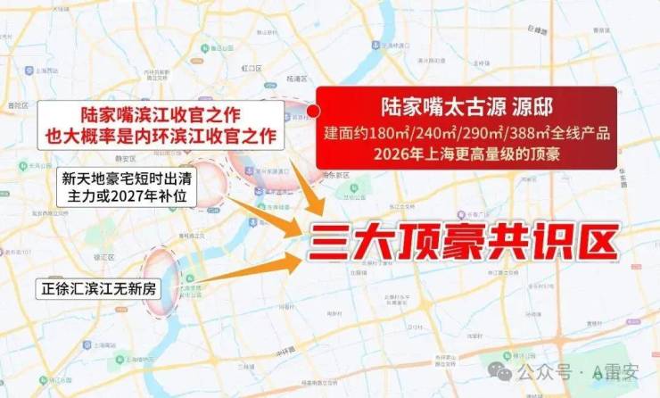 要知道,上海目前有三大顶豪共识区:新天地、徐汇滨江、陆家嘴。前两者今年预计无新房入市,也就是说,陆家嘴太古源 源邸成为2026年上海量级更高、更具稀缺性的顶豪选择,是今年上海顶豪绝对“主角”。