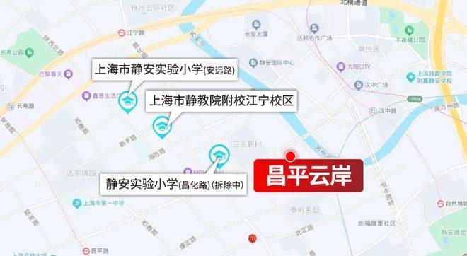 昌平云岸所处片区有3所公办小区,1所静安实验小学(昌化路校区)拆除中,1所静教院附校江宁校区,1所静安实验小学(安远路校区)。按2025年学区划分,片区内二手房基本都是2选1。
