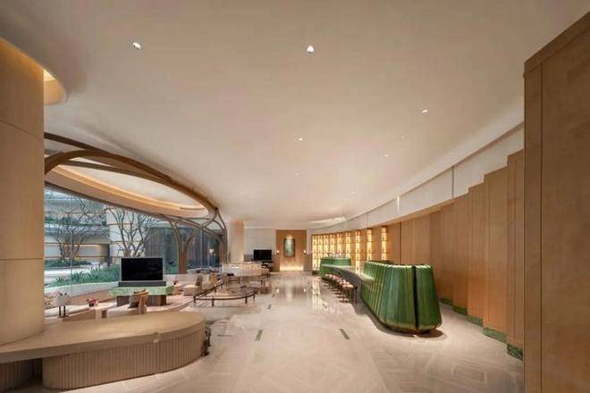 因项目整体抬高,从下沉庭院到架空层“空中花园”的落差极大,形成独特的峡谷地貌,杭序府的设计团队汲取九溪烟树为造园灵感,打造一个立体多维的城市溪谷交互园林;因项目毗邻江岸,杭序府的外立面以“站立的江潮”为灵感,