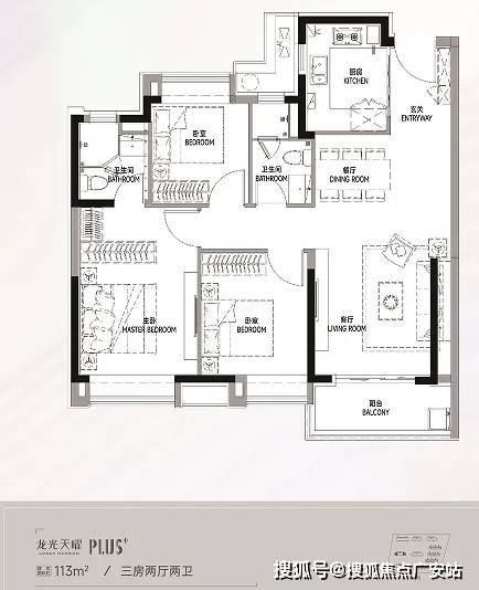 「龙光天曜」在户型设计方面也是下了很大的功夫,在保证户型方正的基础上,通过对住宅内部功能空间结构的科学设计,尽可能创造更多南向空间。
