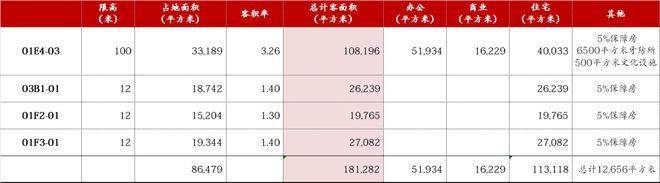 地块总占地面积33189方,容积率3.26,总建面176334平方米,地上计容建面108196平方米,地上不计容建面8704平方米,地下建面59434平方米。