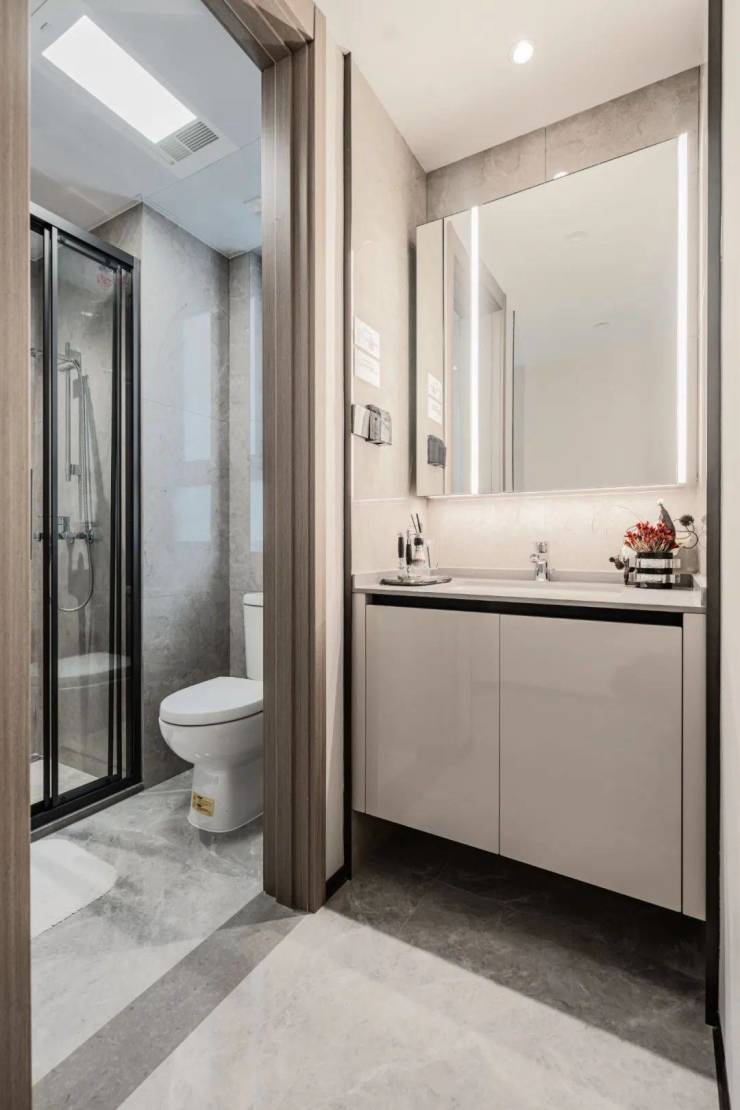项目配备了科勒(或同等品牌)的马桶、台盆、龙头等,更设置有暖风机,定制卫浴柜,时尚美观,实用性也非常高。
