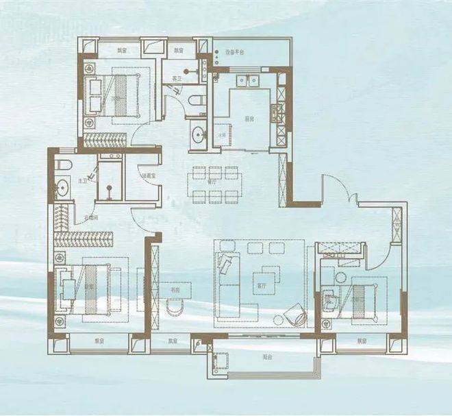 主力户型:95㎡-119㎡三房、142㎡四房,全明格局设计