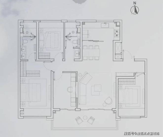 三卧朝南|LDKB格局|双联阔景阳台约2M进深|3+1灵动空间|主卧套房