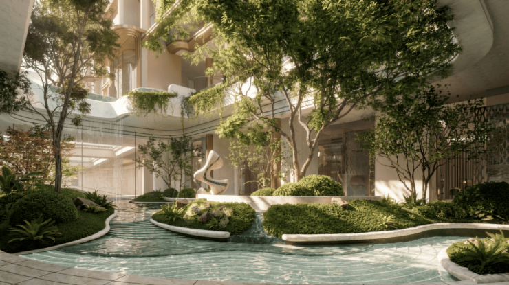 整个社区让业主推窗就是满目绿意,下楼就能拥有森林般的松弛感,真正实现了 “出则滨江繁华,入则森居静谧” 的理想生活。