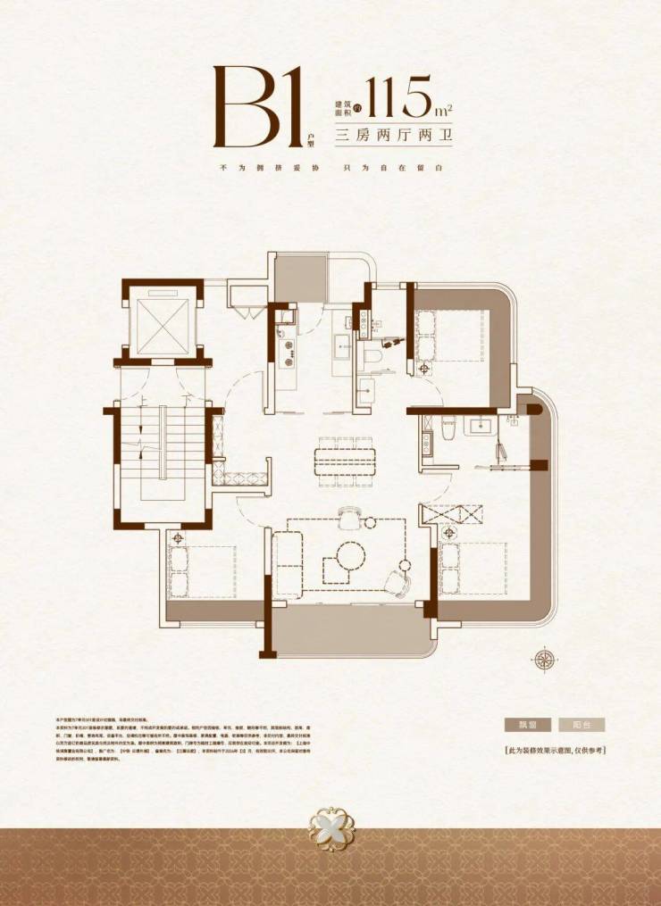 约4.9米客厅面宽的115㎡3房!