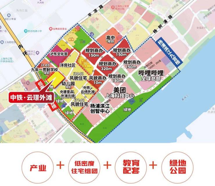 中铁·云璟外滩就位于杨浦滨江这个精华九宫格内,不仅纵享九宫格全维顶配资源,南侧约350米就是哔哩哔哩、美团,可谓近水楼台,使其成为区域内极为稀缺的、能够轻松实现从科创大厂步行或骑行归家的全新楼盘,直面科创辐射强大能量。