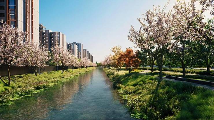 部分效果图曝光如下,公园商业、樱花河道、滨河休闲景观带次第排列,生态优势十分惊艳!