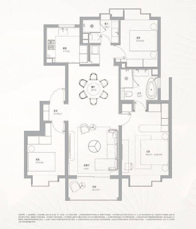 主卧大套房设计,主卫双台盆带浴缸配置,尊崇感十足!