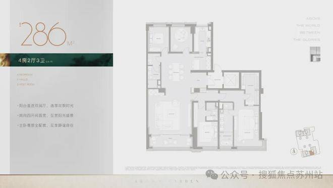 1.四卧均带独立卫浴,南向双卧为「超级套房」