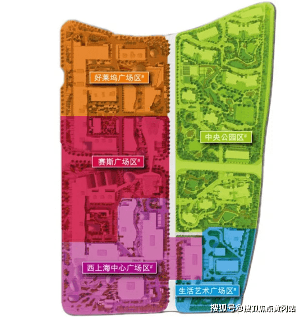 整个高尚领域划分成五大多元化生活主题:以住宅为主的中央公园生活区、提供娱乐设施的好莱坞广场区、设特色餐饮的赛斯广场区、设甲级商厦和星级酒店的西上海中心广场区,及适宜摆放现代艺术品的生活艺术广场区。