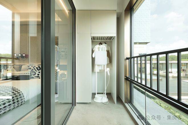 公建化的立面,四面铝板搭配大面积玻璃,阳台统一封包,底层的浅色天然石材还被打磨出弧线,脱去厚重外壳,轻盈洒脱。项目西侧直线约800米就是钱塘江,春来晴翠也在园区里编织了一幅山水画卷。