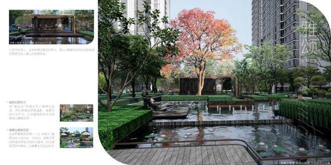 结合约800载嘉定非遗文脉,汲取度假式酒店为灵感,搭配下沉式会所空间,精心设计“双轴6景”高配景观体系,实景演绎四季各异的宅间园色。