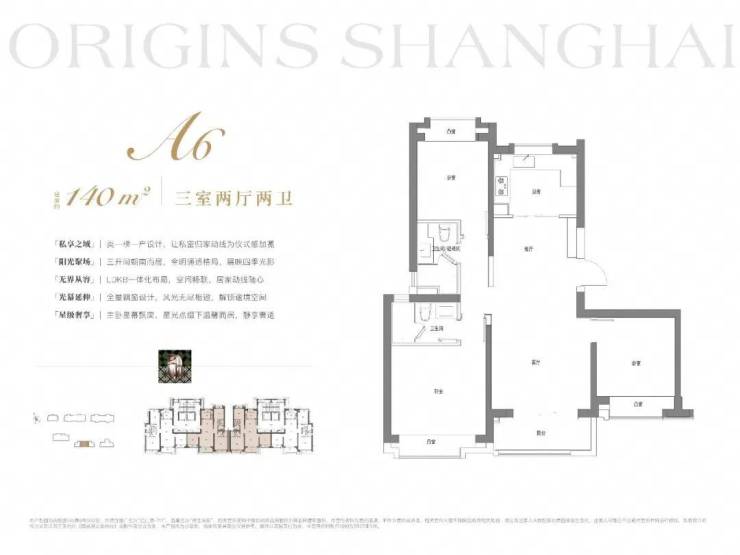 建面约140m²3房2厅2卫:格局上做到三开间朝南+南北通透,让业主起居之间沐浴更多阳光。