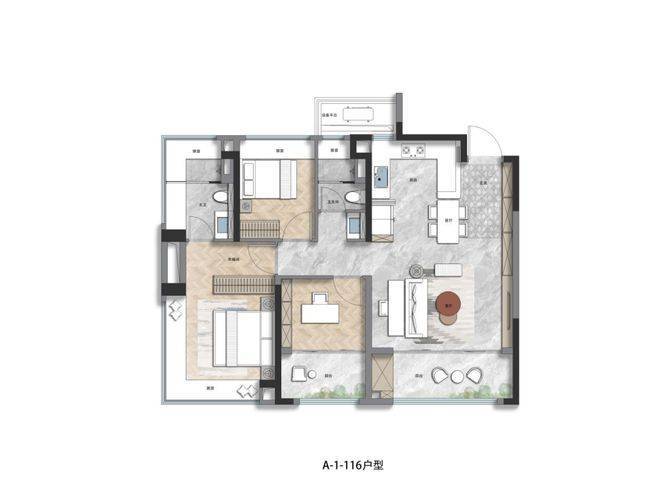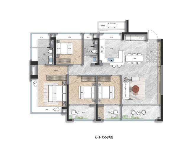 建面约139㎡4+1房户型,四开间朝南+4飘窗+2个约270°转角飘窗,不管是从什么层面来看这个户型,在市面上都几乎是没有对手的。