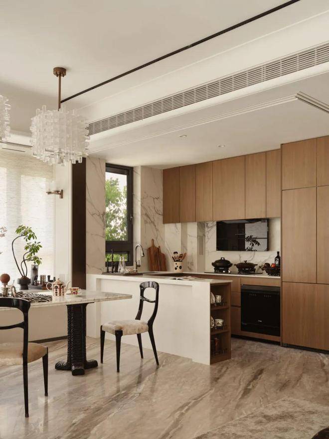 四层是会客区,这个客餐厅的面积就已经可以容纳一个大型的家庭聚会,居住体验堪比约200㎡+大平层。