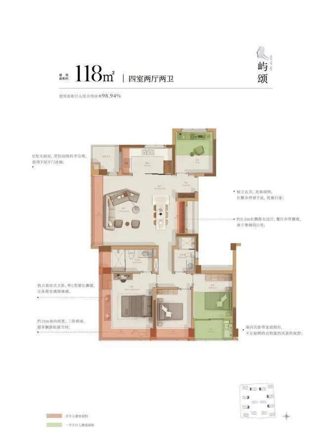 建面约118方户型: