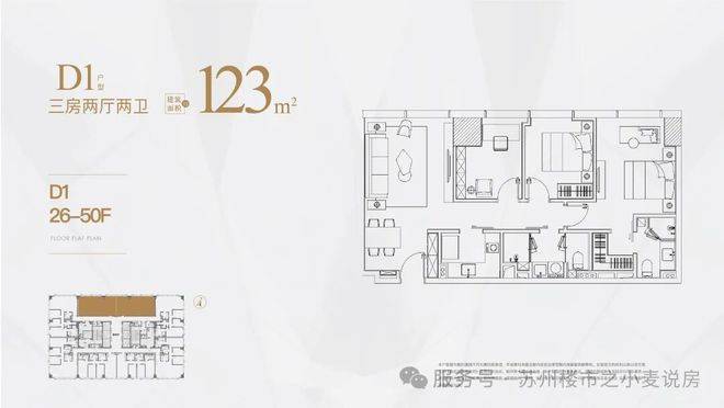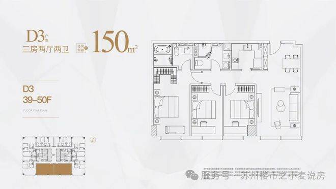 高区为39-50层,户型分别是125㎡,150㎡,180㎡。