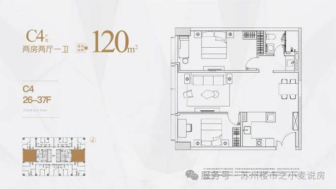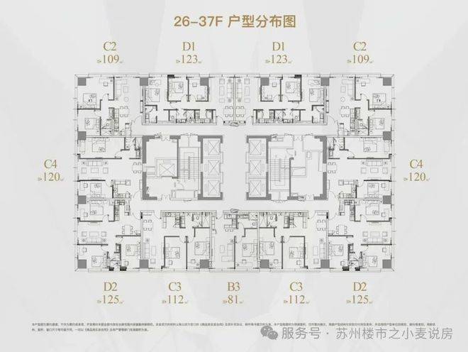 中区是26-37层,户型分别是80㎡,107㎡,120㎡,125㎡;