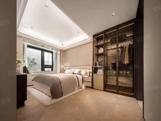 主卧大套房设计,拼花实木复合地板,更显海派风味。