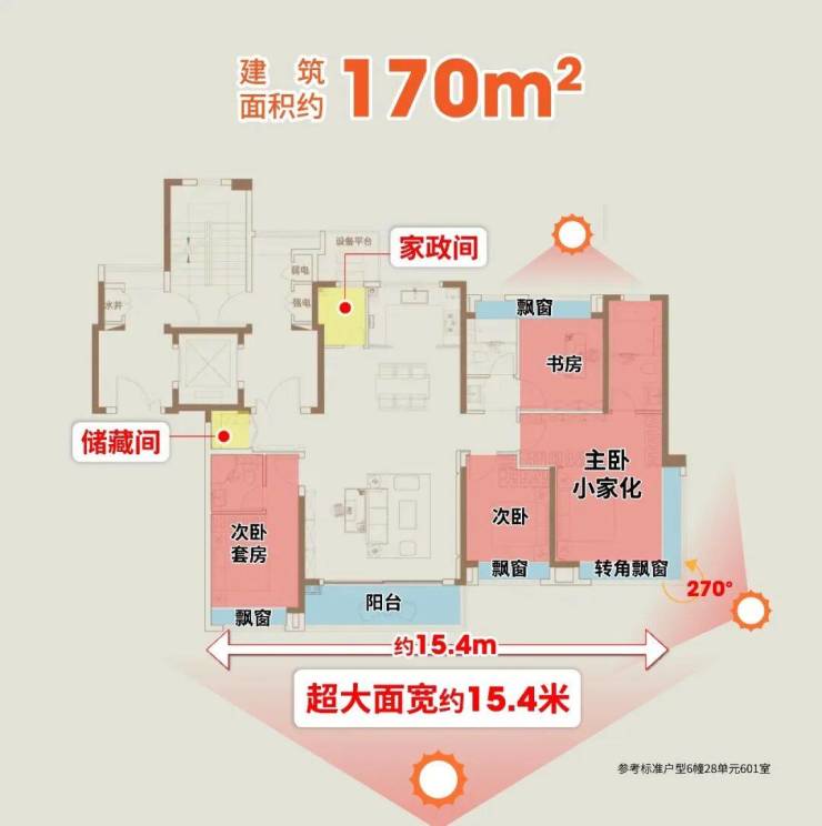 室内,该户型足足有约15.4米面宽,做到惊人的四开间朝南,让阳光全域覆盖!