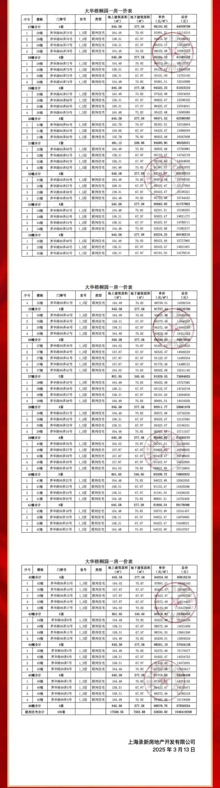 大华梧桐院主力产品为南侧109套联排,主要为四联排,主力面积段为边套165㎡,中间套158㎡,下叠142㎡,上叠139㎡。